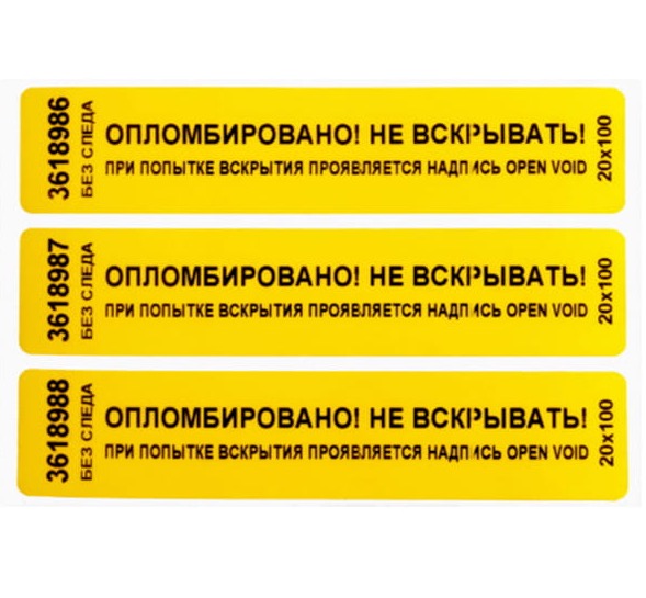 Пломба наклейка 20х100, номерная, не оставляет след (Желтый)