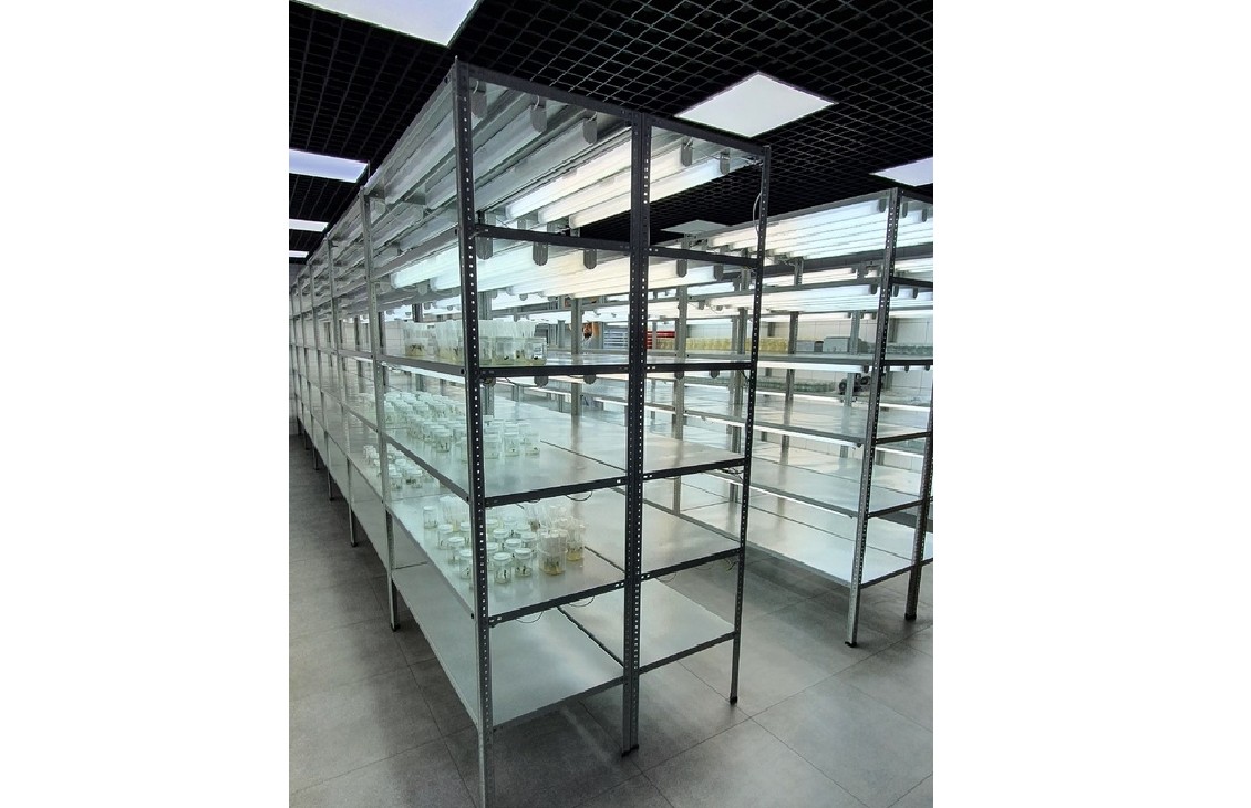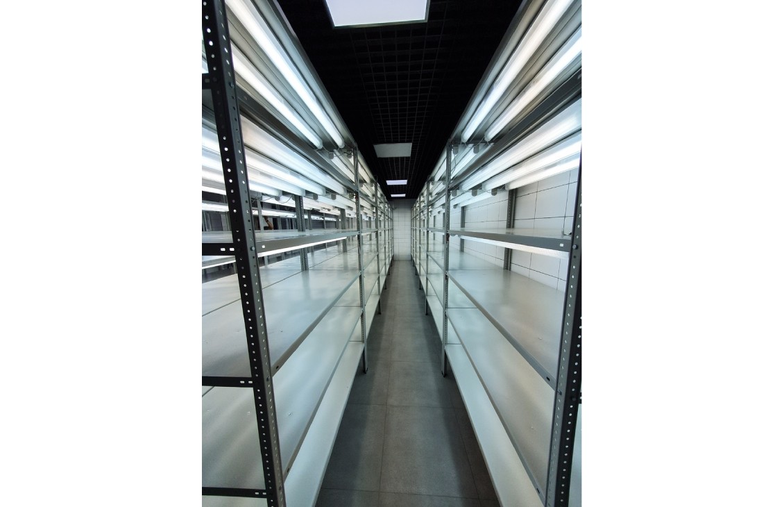 Спектр света люминесцентных ламп полностью устраивал Заказчика, за счет чего получилось добиться значительно меньшей стоимости проекта, сравнительно с фито-стеллажами